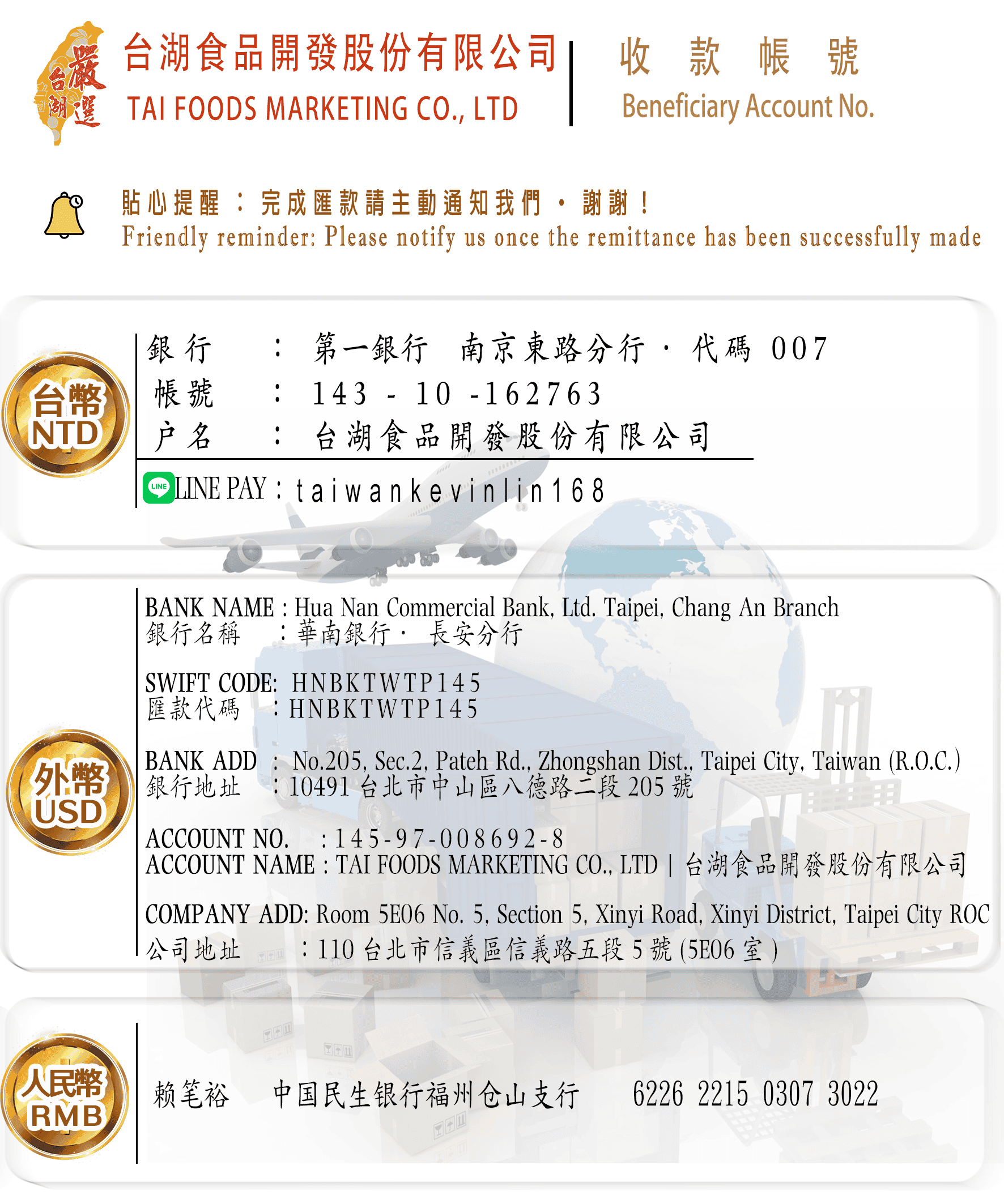 收款帳號/Beneficiary Account
