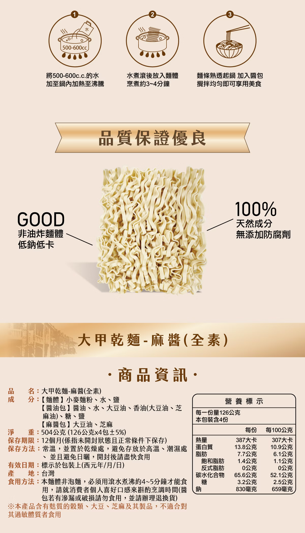 品名 :大甲乾麵 麻醬(全素)