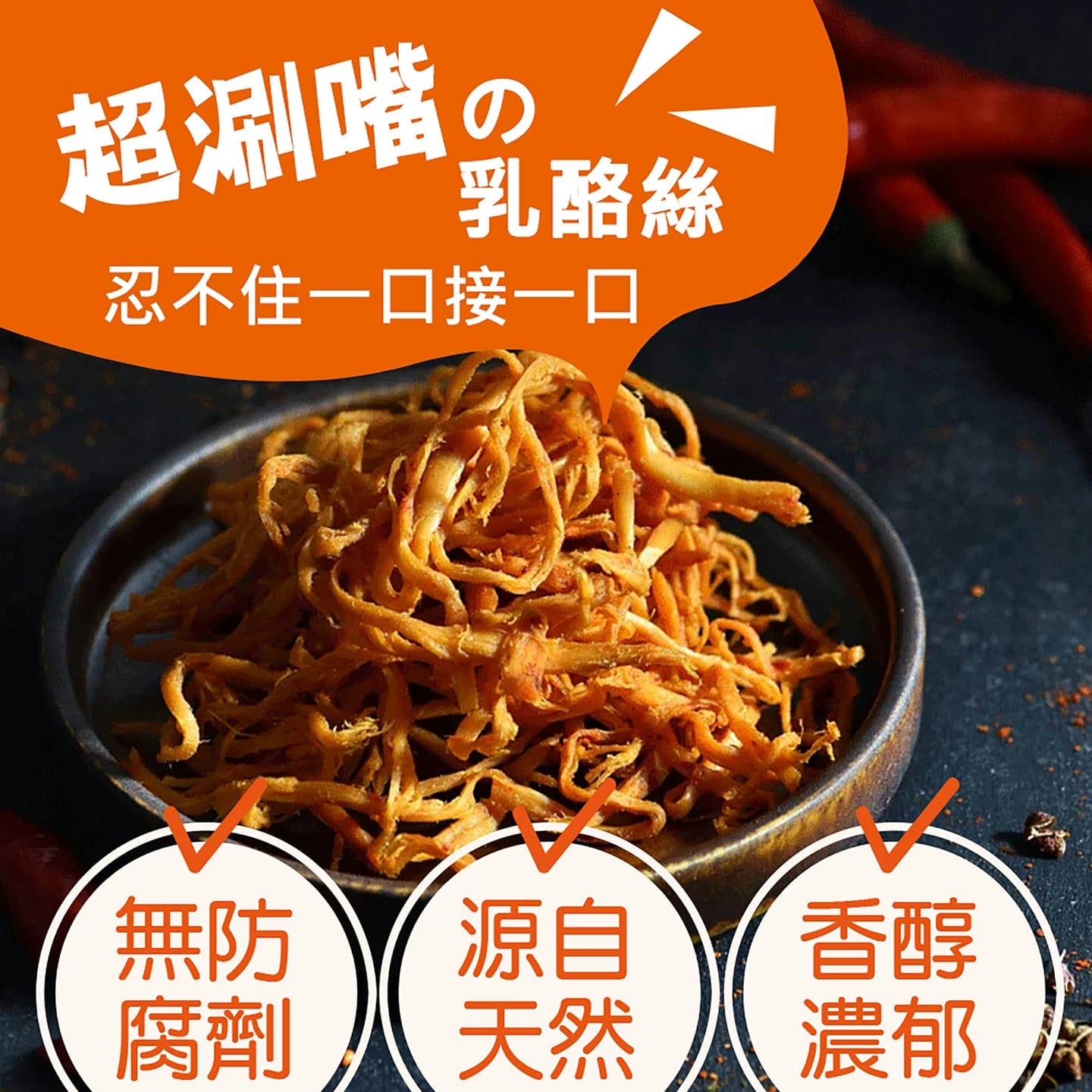 原味千尋白雪-辛‧乳酪絲,是不是讓您聯想到超級辣但超級好吃的辛‧拉麵~~沒錯!辛有辣的意思,您是韓式口味愛好者,還是無辣不歡的重辣成癮者嗎?辣的乳酪絲還不快嘗嘗,保證讓您一口接一口,超級涮嘴!忍不住一口接一口。無防腐劑,源自天然,香醇濃郁。100%牛奶製作,純天然,熊安心。富含高天然鈣,吃得美味又健康。16公斤牛奶僅製成1公斤乳酪絲,手工剝絲。更榮獲世界品質評鑑大賞、亞太無添加美食獎。黃金乳酪絲的美名絕對是實至名歸。