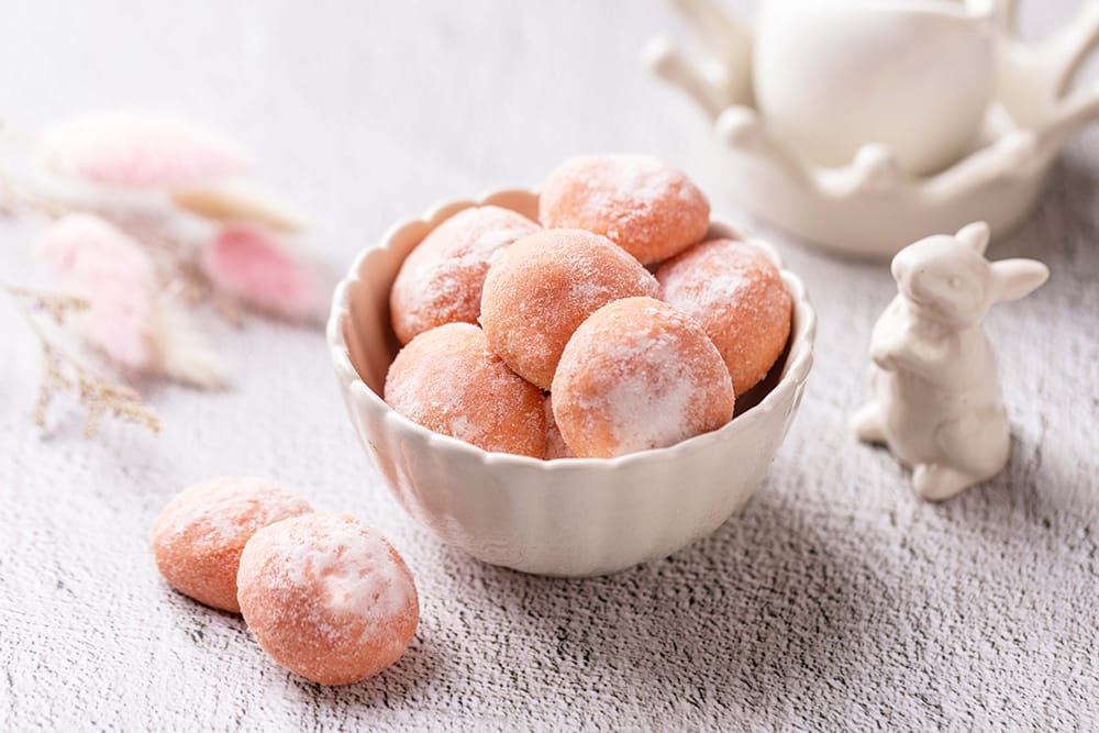 加入核桃帶出滿滿堅果香氣,輕柔在外面沾裹上如細雪般的糖粉,