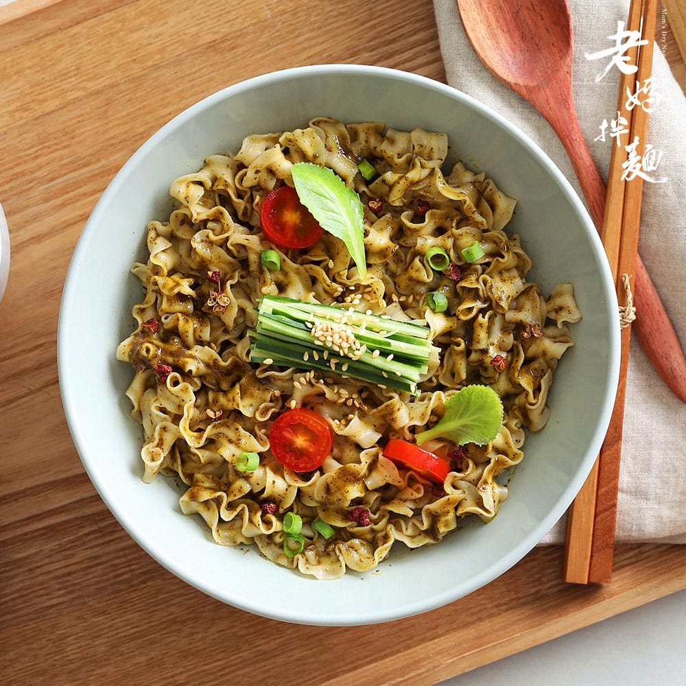 ☆★☆ 選用香椿嫩葉,調製成獨特香氣醬汁清爽開胃,完美沾附醬料的關廟刀削麵,古法日曬手工製成麵香口感Q彈。 ☆★☆ ★ 【產品規格】 品名: 老媽拌麵(香樁椒麻-素) 規格: 118gx3包/袋 箱入數:12袋 箱毛重:5.3 kg 保質期:12個月 箱材積:65×35×19 【聯絡我們】