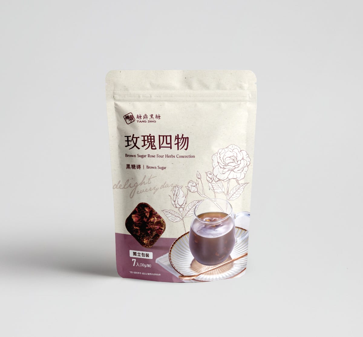 ★☆★ 以純糖熬煮,不額外添加糖精增加甜度! 五大中藥材熬煮:當歸、川芎、白芍、熟地、枸杞,玫瑰花香與淡淡的黑糖香,降低傳統四物的苦澀味,只有順口的黑糖香甜。 【產品規格】 品名: 黑糖玫瑰四物 規格: 30g×7入/包 箱入數:50包 箱毛重:11.5 kg 保質期:常溫18個月 箱材積:41×32×32 【聯絡我們】