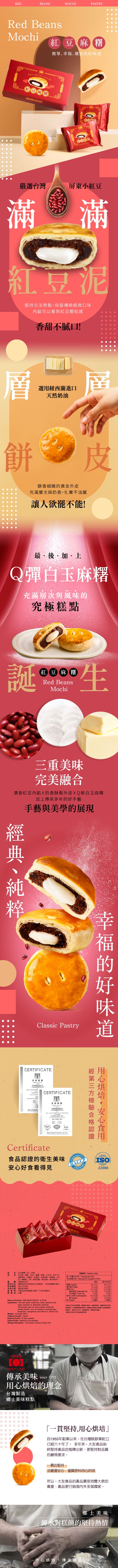 ★ 榮獲2024年食品界米其林1星殊榮 ★ 【產品內容】 品 名:紅豆麻糬5入 (奶素) 規 格:350g/盒 箱入數:15盒/箱 保值期:45天 箱材積:42*28*45(cm) 箱毛重:10kg 【聯絡我們】